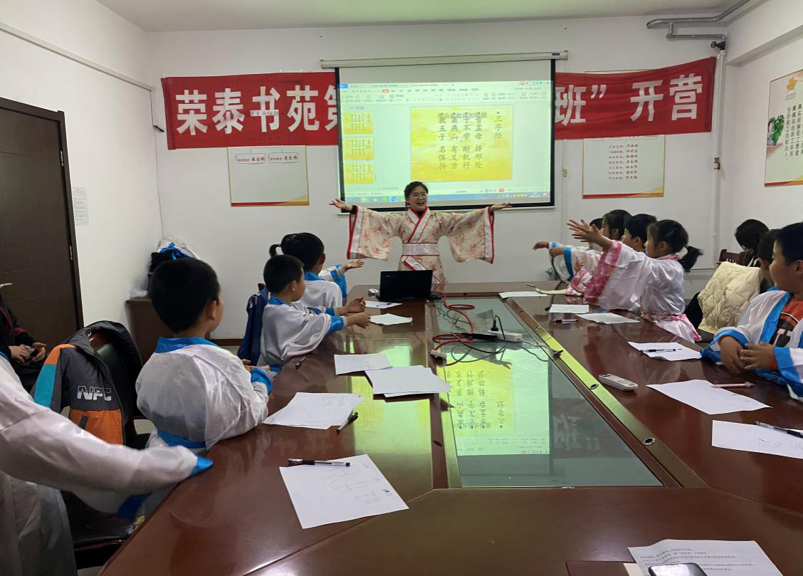 2020年11月21日下午3時,榮泰書苑第一期開營典禮在集團4樓會議室如期舉行。參加此次典禮的人員有監(jiān)察部經(jīng)理董毓華,工會主席吳仕娟,給孩子們上國學課的曹家茹老師,二十多位職工家屬和孩子們。
