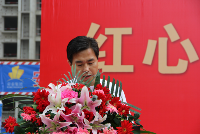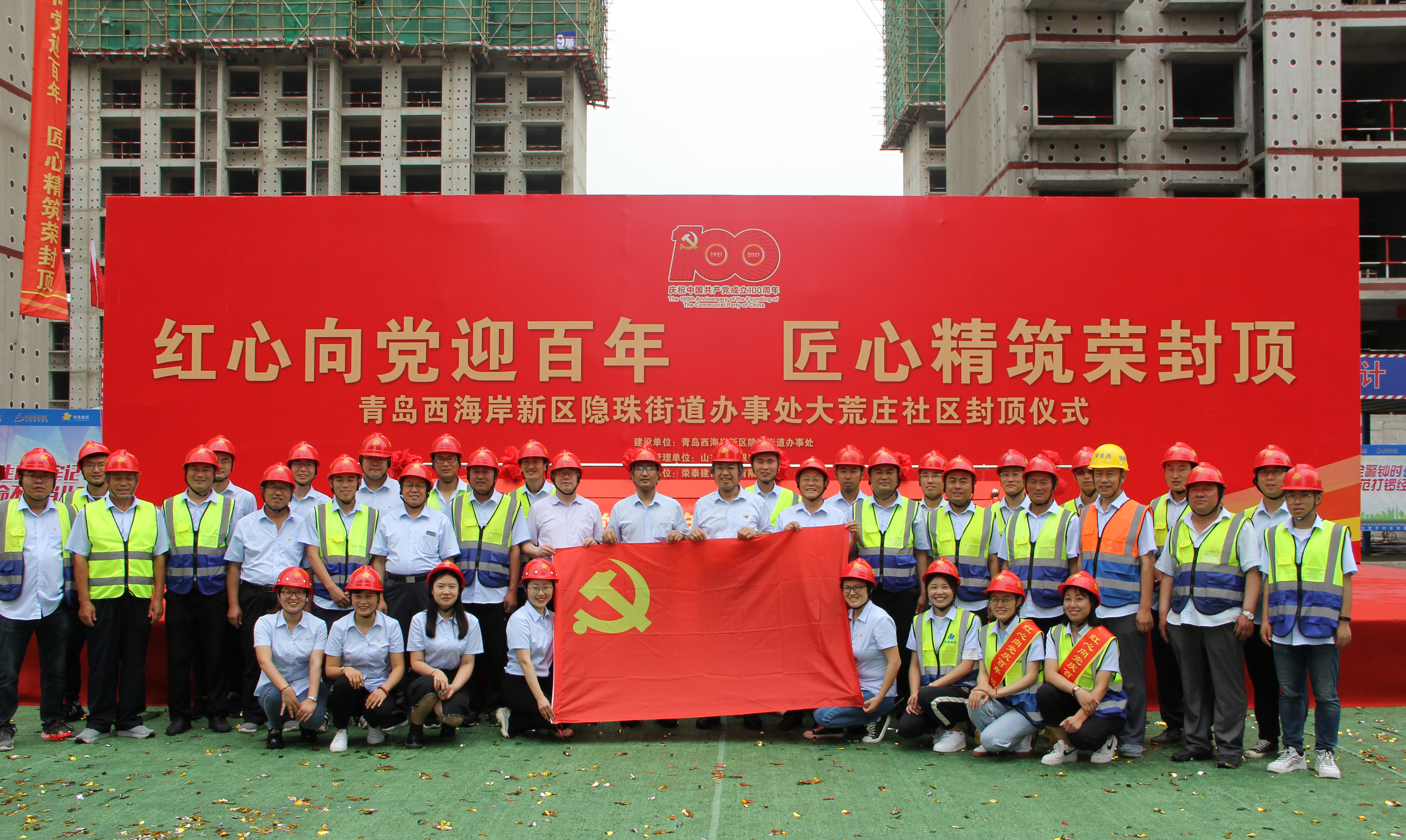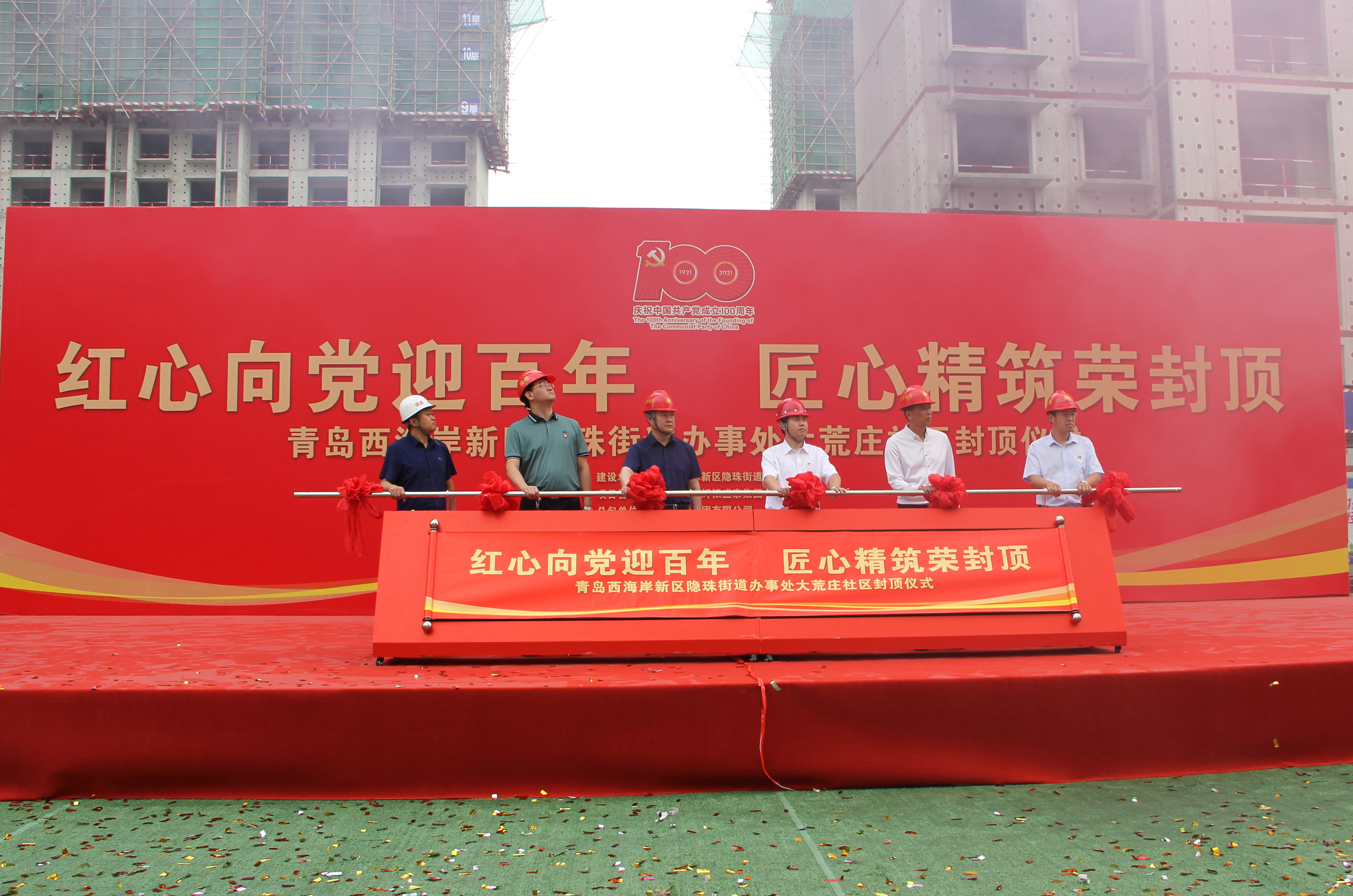 青島西海岸新區(qū)海洋高新區(qū)管委、青島西海岸新區(qū)隱珠街道辦事處、大荒莊社區(qū)黨委、山東旭輝銀盛泰集團有限公司、青島建通浩源集團有限公司、榮泰建設(shè)集團有限公司等相關(guān)部門和企業(yè)領(lǐng)導(dǎo)、大荒莊社區(qū)群眾代表、新聞媒體界朋友等近千人出席了封頂儀式。