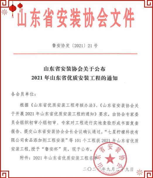 山東省級獎項(xiàng):山東省優(yōu)質(zhì)安裝工程(魯安杯)獎;山東省安裝行業(yè)先進(jìn)集體稱號;山東省房屋建筑施工安全文明標(biāo)準(zhǔn)化工地1項(xiàng);山東省工程建設(shè)質(zhì)量管理活動競賽11項(xiàng);山東省科學(xué)技術(shù)獎2項(xiàng);山東省安全特色工作法1項(xiàng);山東省省級工法9項(xiàng);山東省建設(shè)工程BIM應(yīng)用成果“天元杯”競賽6項(xiàng)等獎項(xiàng)。