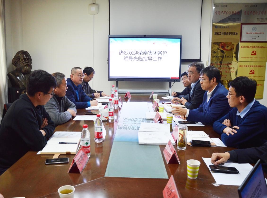 鞠志強(qiáng)處長介紹了青島理工大學(xué)的基本情況和合作發(fā)展處的工作情況,就校企融合、校城融合以及與榮泰集團(tuán)在科研合作、人才合作等方面提出了合作方向、意見和建議。沙洪成教授分別就與榮泰集團(tuán)進(jìn)行黨建戰(zhàn)略合作的意義、內(nèi)容、形式等進(jìn)行了介紹,提出了做好黨建工作將在助力榮泰集團(tuán)高質(zhì)量發(fā)展、培育企業(yè)文化品牌等方面帶來的重大意義和積極作用。