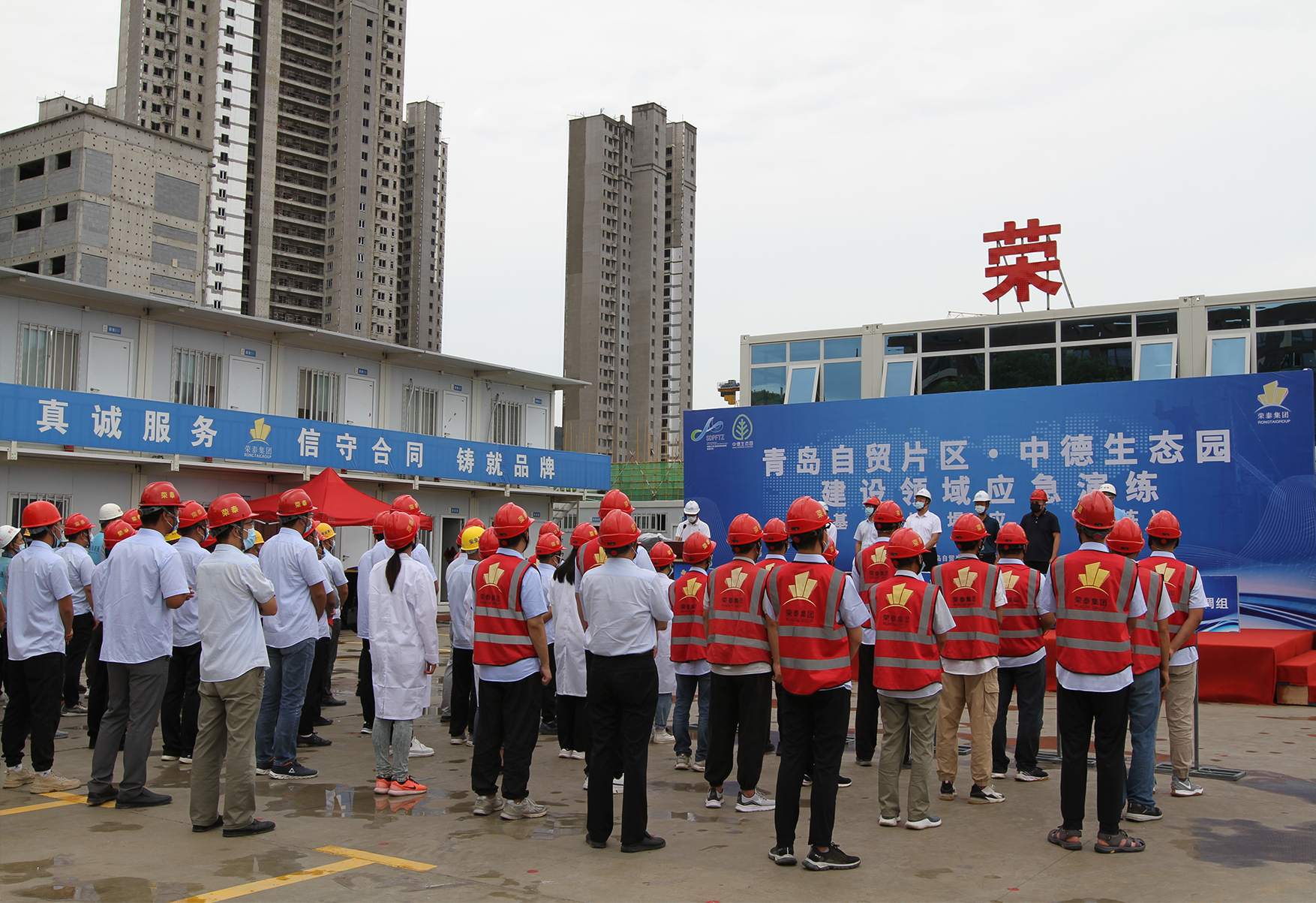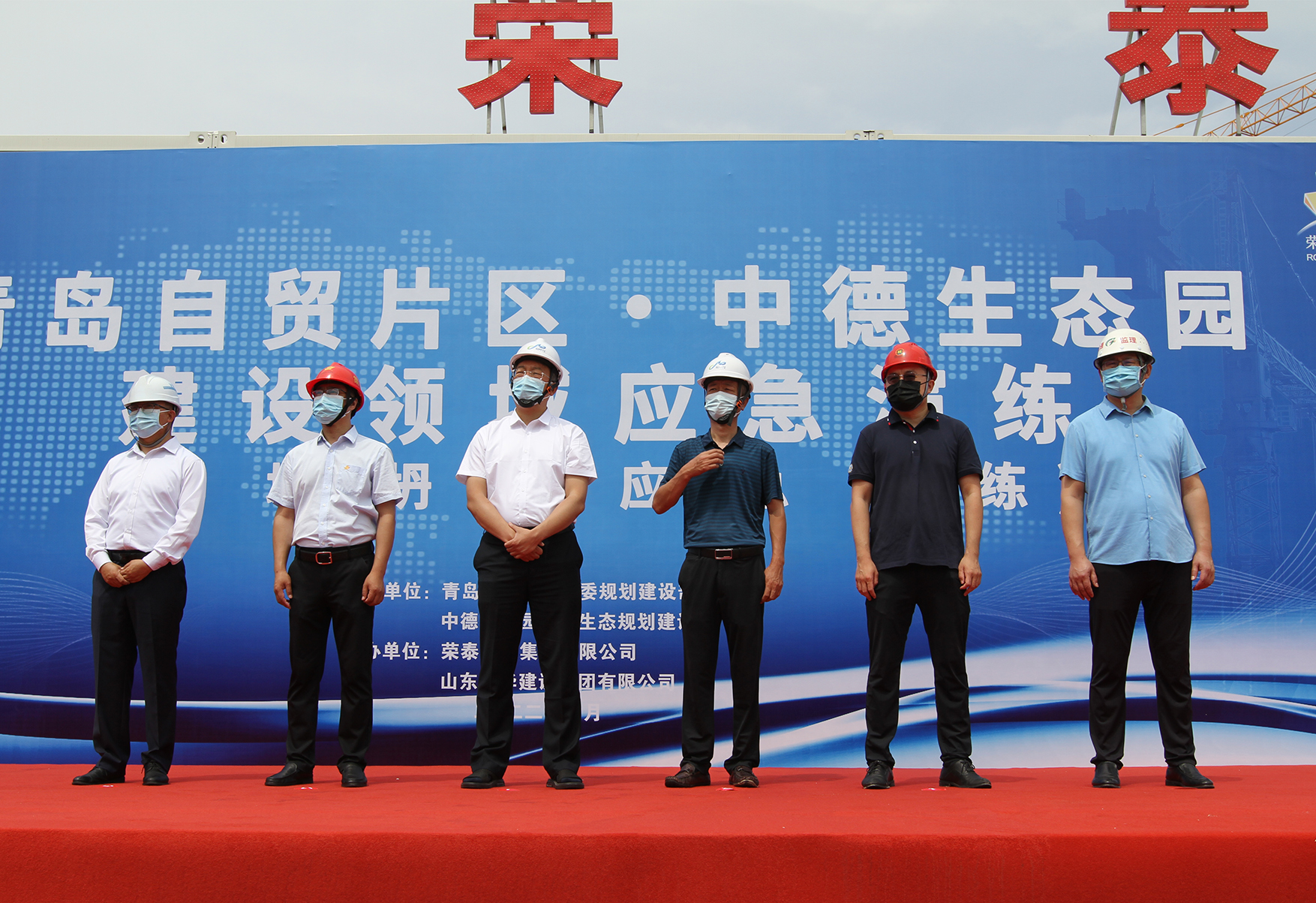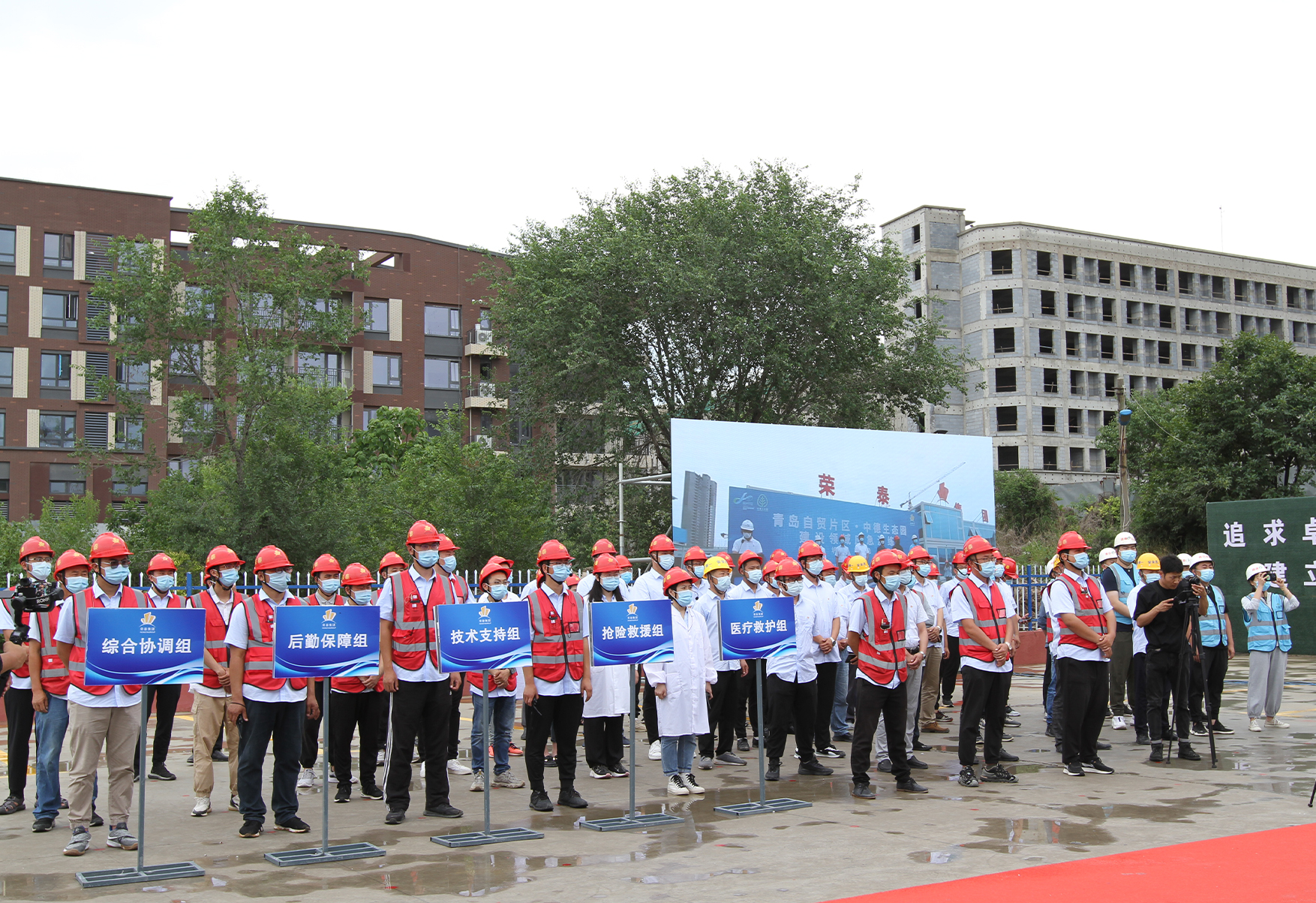 參加本次應(yīng)急演練的領(lǐng)導(dǎo)嘉賓有青島自貿(mào)片區(qū)規(guī)建部副部長周彥霖、青島西海岸新區(qū)住房和城鄉(xiāng)建設(shè)局建筑業(yè)管理科科長張煥欣、榮泰建設(shè)集團(tuán)有限公司副總裁苗增剛、山東興華建設(shè)集團(tuán)有限公司副總裁陳相宇、青島??匚磥沓情_發(fā)有限公司經(jīng)理孫鈺斐、青島建通浩源集團(tuán)有限公司副總裁徐明明,以及青島自貿(mào)片區(qū)規(guī)建部、榮泰建設(shè)集團(tuán)有限公司、山東興華建設(shè)集團(tuán)有限公司等單位相關(guān)人員。