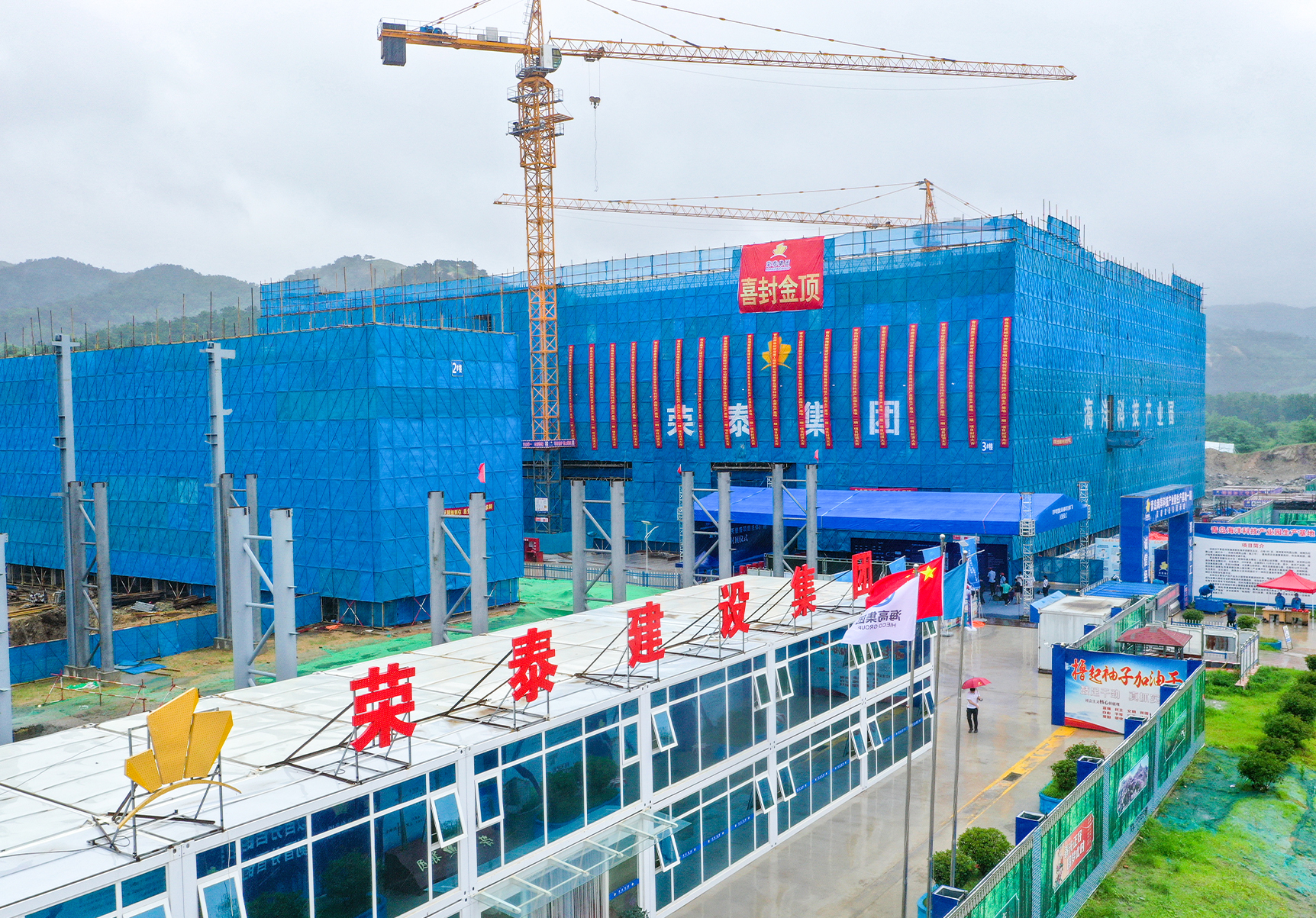 雨潤大地,生機(jī)勃發(fā)。2022年7月17日,由榮泰集團(tuán)施工的寰宇乾堃航天裝備項(xiàng)目主體封頂儀式隆重舉行。