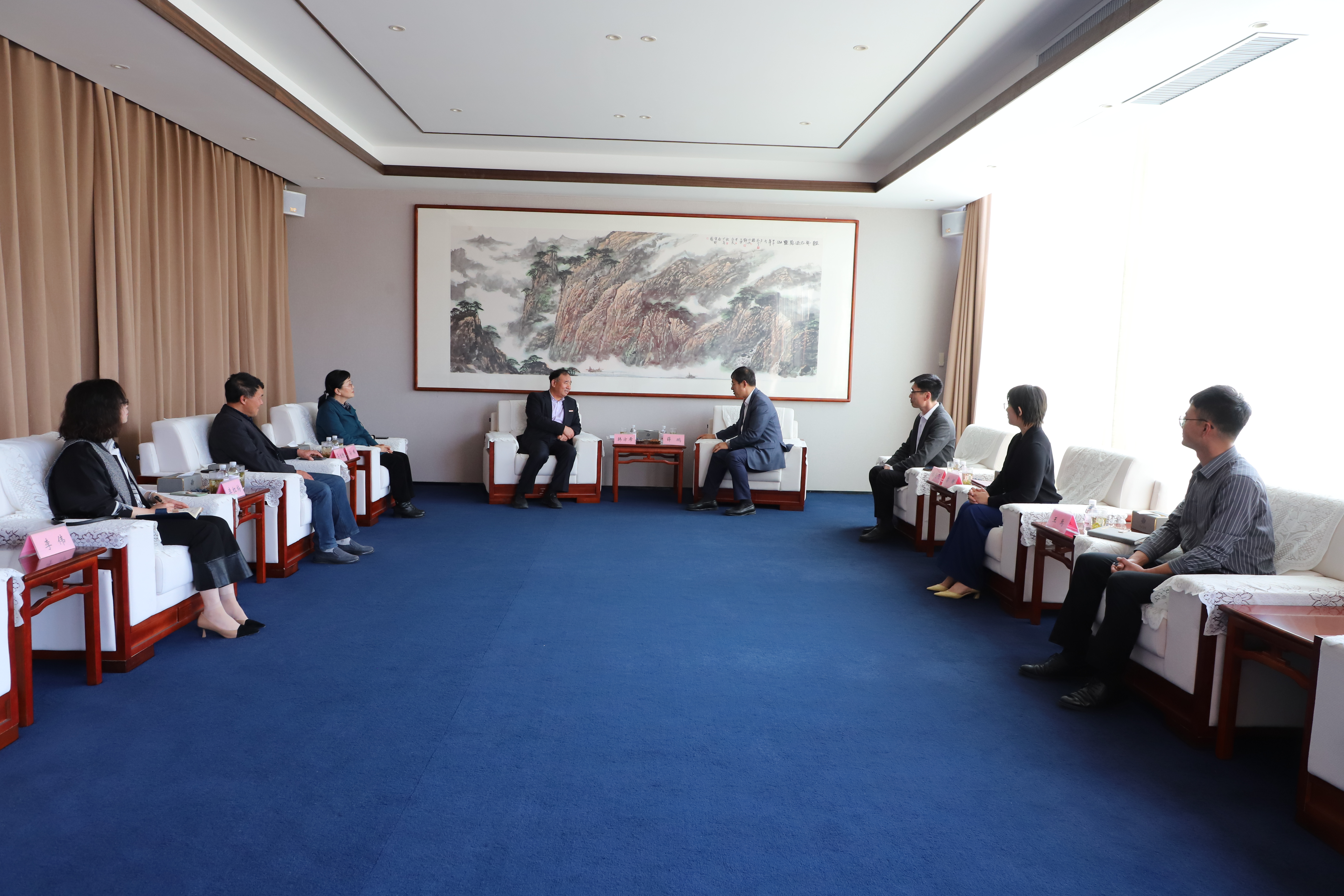 為精準對接人才需求,5月12日上午,青島濱海學院校長韓方希一行訪問榮泰集團,董事長薛鵬及有關人員陪同交流。
