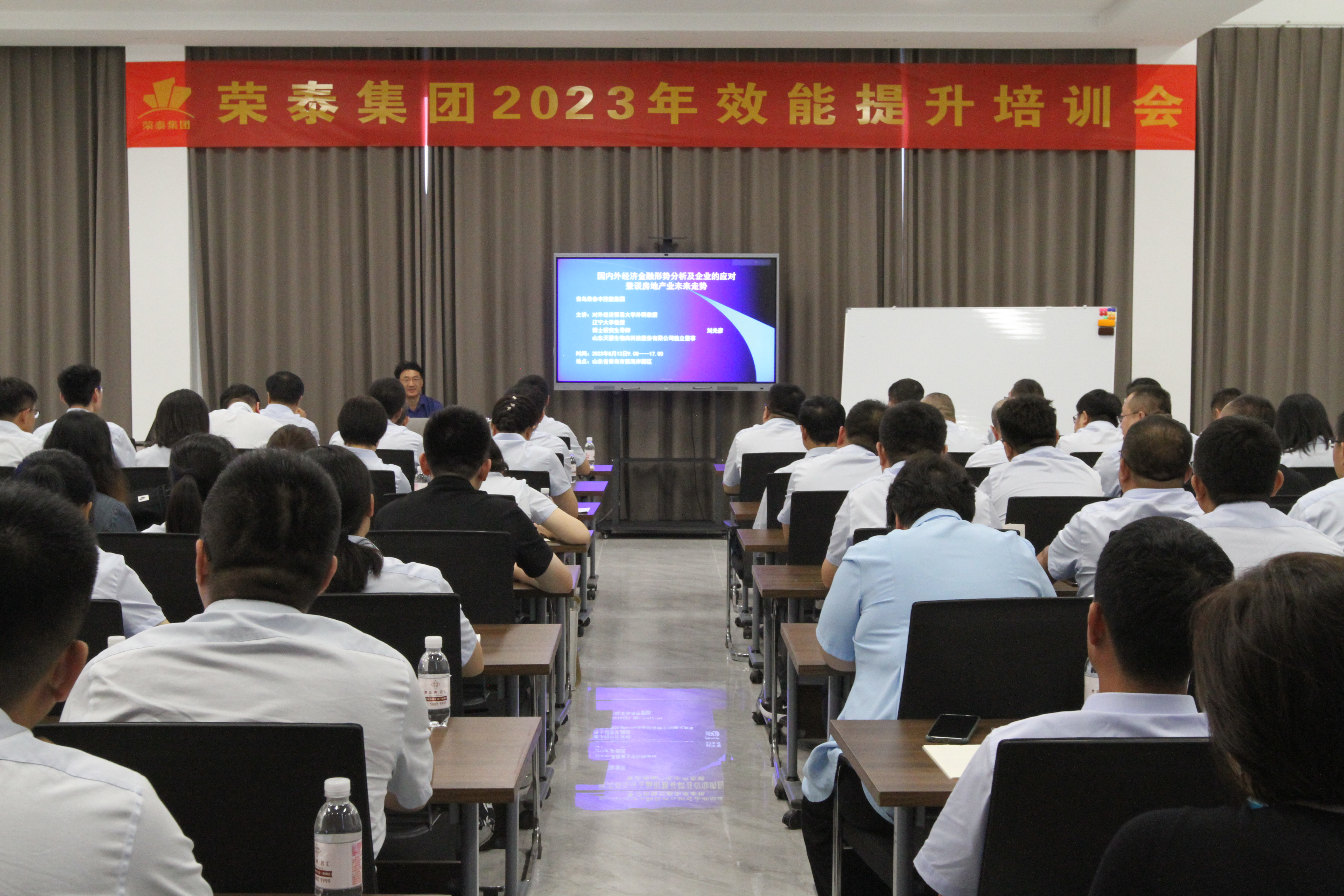 為了提高集團(tuán)管理水平,增強(qiáng)集團(tuán)管理層的知識(shí)儲(chǔ)備,8月13日,集團(tuán)邀請(qǐng)對(duì)外經(jīng)濟(jì)貿(mào)易大學(xué)外聘教授、遼寧大學(xué)教授、博士研究生導(dǎo)師劉光彥教授,對(duì)集團(tuán)管理層就“國內(nèi)外經(jīng)濟(jì)金融形勢(shì)分析及企業(yè)應(yīng)對(duì)”進(jìn)行培訓(xùn)。