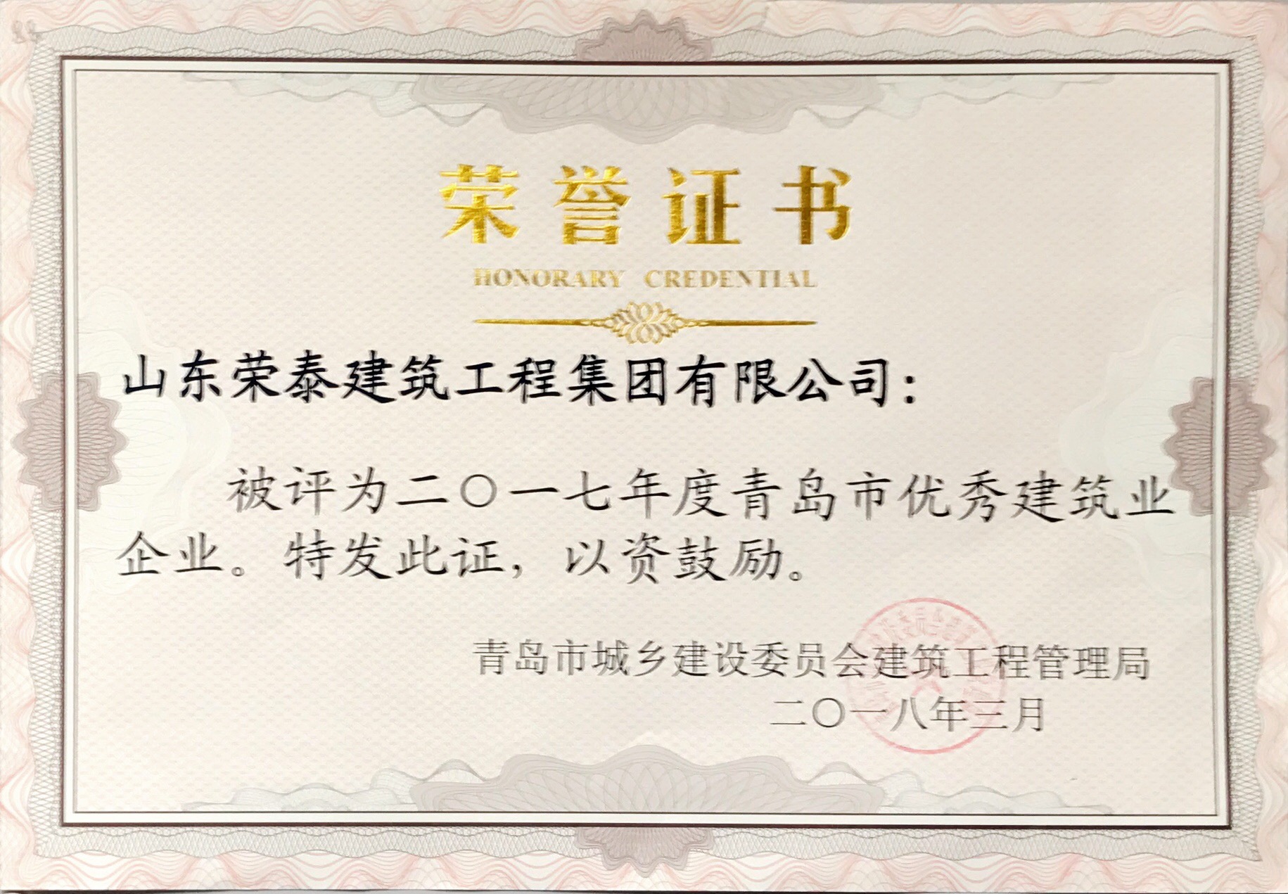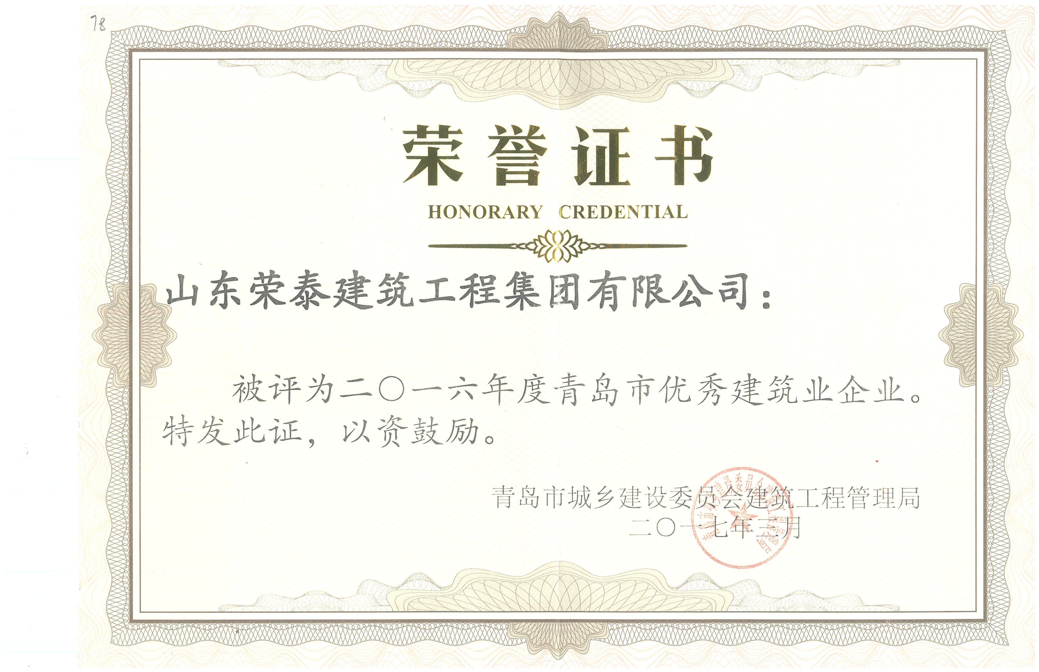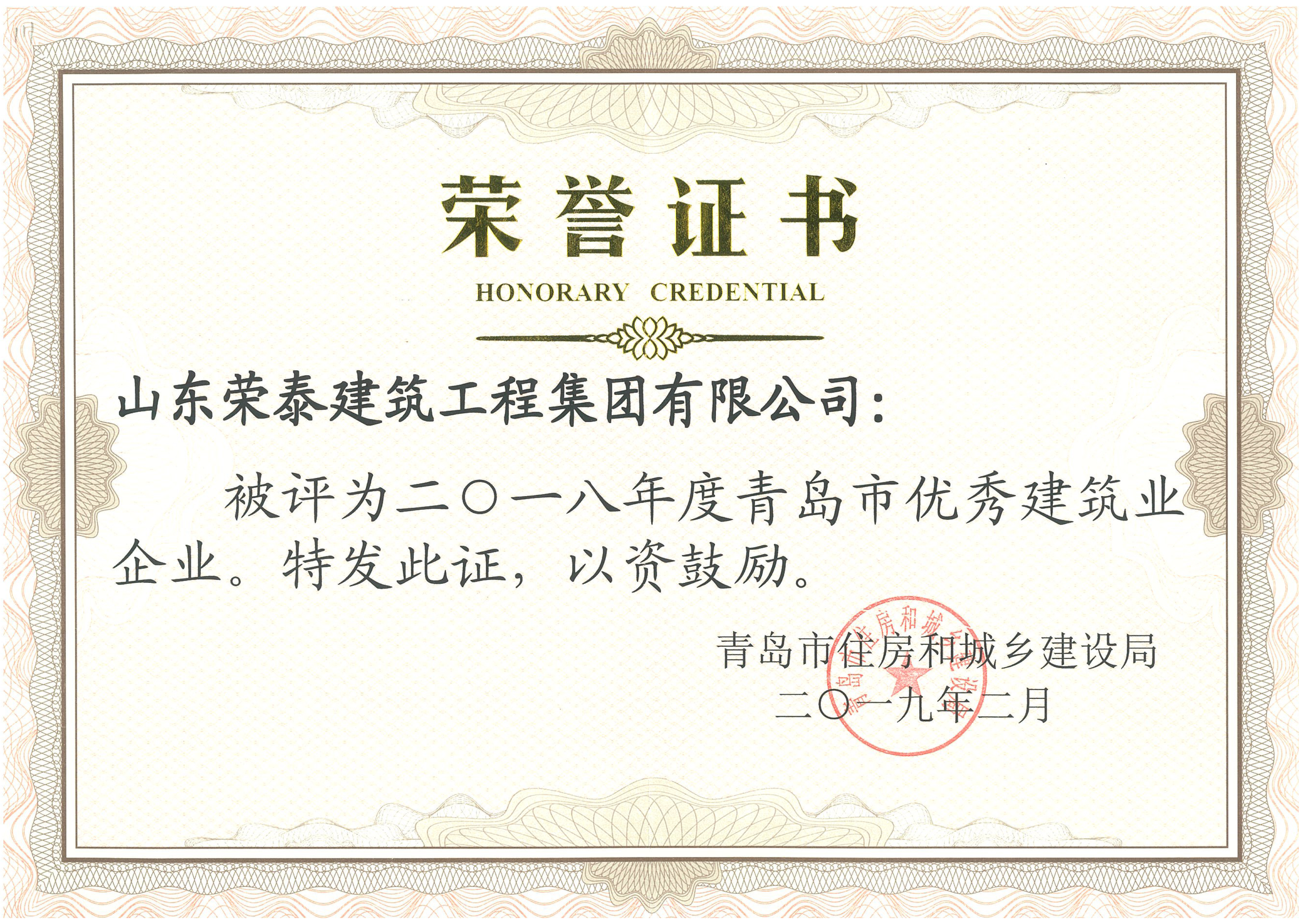 2018青島市優(yōu)秀建筑業(yè)企業(yè)