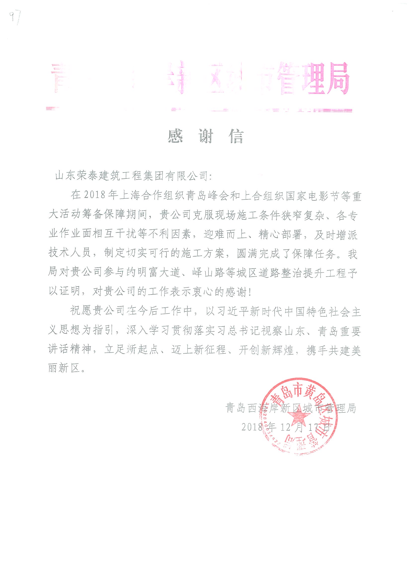 上合峰會(huì)感謝信